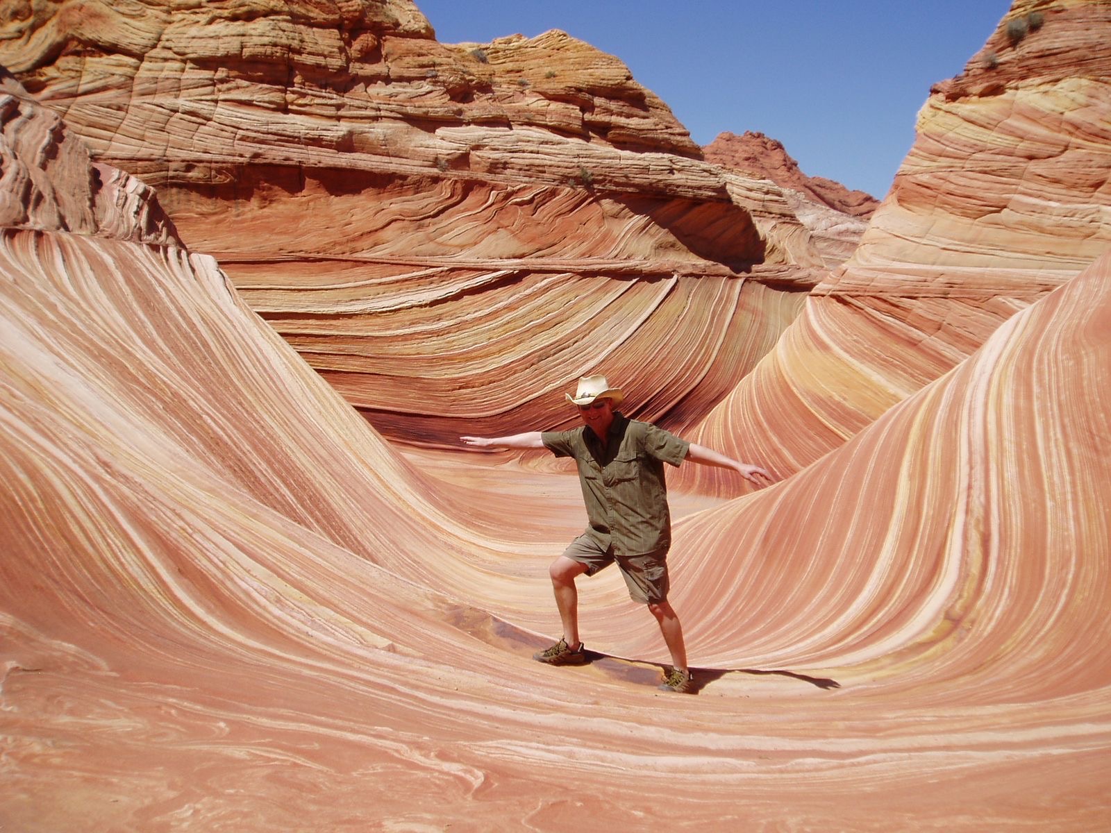 Permits gab es damals problemlos, dazu wurden in der Ranger Station 5 Bilder gezeigt. Eins zeigte den Abzweig ab Highway 89, eins den Trailhead und eins den Abzweig zum Buckskin Gulch, Dazu 2 Bilder von weiten Ebenen. Am nächsten Tag hatte ich jedenfalls vergessen wo genau die Wave zu finden war und irrte zusammen mit 4 Amis ziellos durch die Gegend.