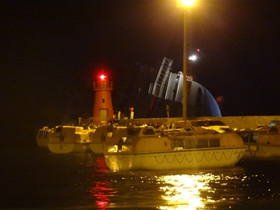 Damit die geplagten Bewohner der Insel nicht noch mehr leiden müssen, wohnen die Arbeiter auf Schiffen, das logistische Hauptquartier liegt weit entfernt auf dem Festland. Doch auch das ist nur ein schwacher Trost. Frühestens im nächsten Jahr wird wieder Alltag einkehren, wird es vielleicht auch wieder eine normale Touristensaison geben. Bis dahin sollen auch die Betonpfeiler entfernt und der Meeresboden renaturiert worden sein. Die Katastrophe des 13. Januar wird dennoch tief im kollektiven Gedächtnis eingegraben bleiben. „Die Insel Giglio wird die Tragödie niemals vergessen“, sagt Bürgermeister Sergio Ortelli. Er hat beschlossen, dass der Felsen, den die „Costa Concordia“ rammte, zum Mahnmal wird.hier kann man ein paar aktuelle Bilder von dem Kahn sehen - ich finde es erschreckend, wie rostig das grad an der Wasserlinie schon alles ist......