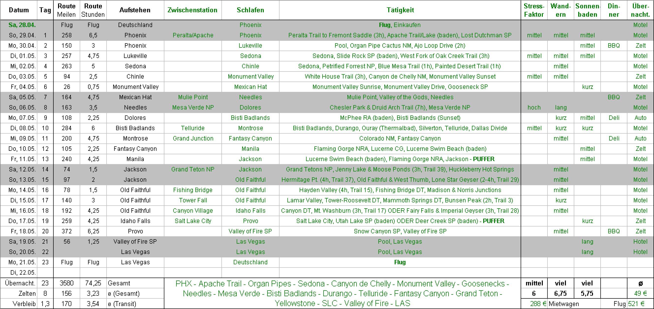 • So, jetzt habe ich auch noch die Karten mit dazu verlinkt. Immer nur bis Grand Junction, weil danach identisch...