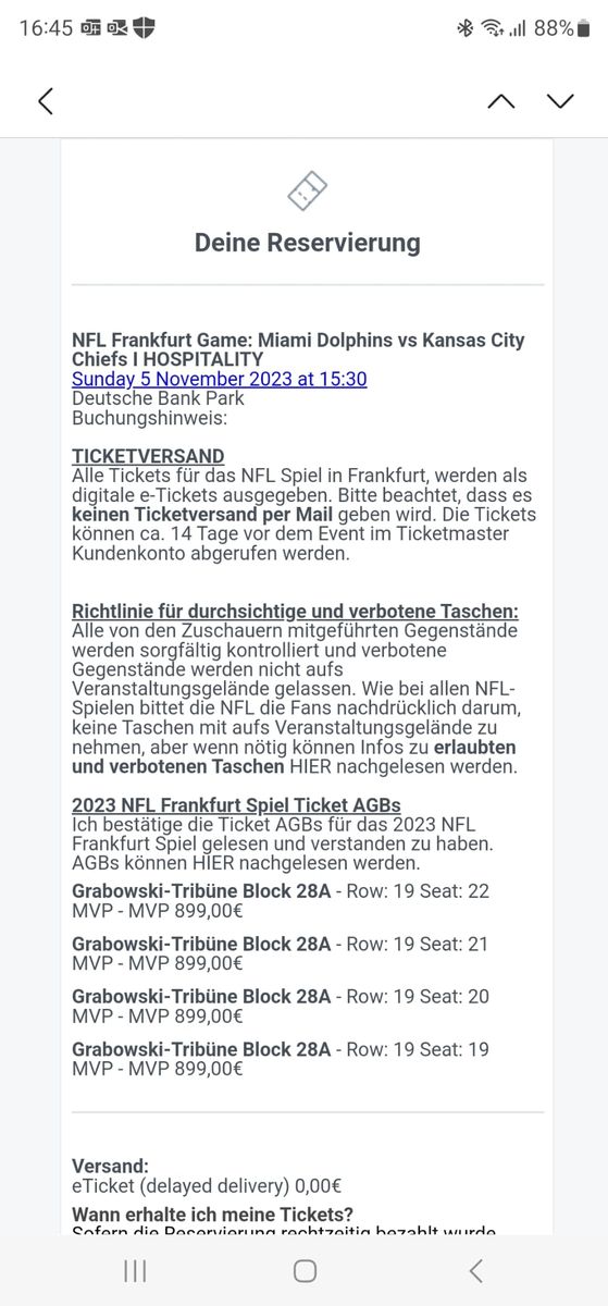 Stefan hat bei den Tickets für das 2. Spiel Glück gehabt und so darf unser Sohn und seine Kumpels zu Colts gegen Patriots, beim anderen Spiel hat es leider nicht geklappt, da war der Sohn bei über 900 000 und mein Mann bei knapp 2 Millionen in der Warteschleife. Wir hatten Glück und bekamen noch die günstigsten Tickets für die Jungs 4x75,- =300,- gesamt