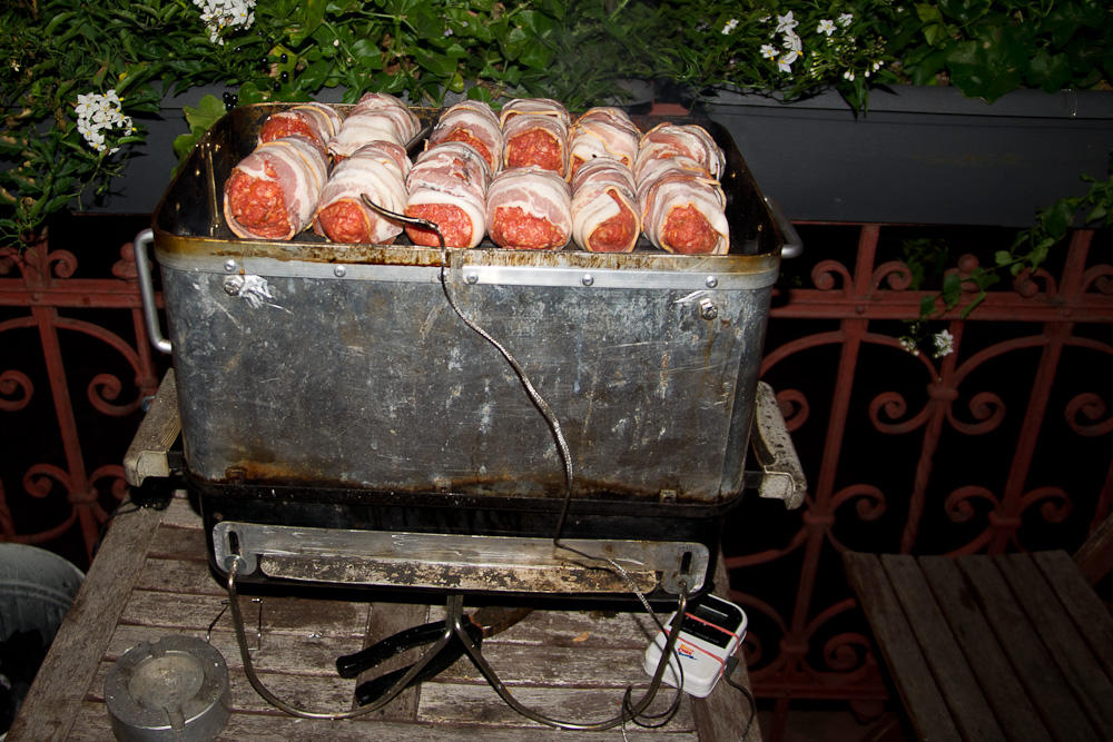 Meine Frau lässt den Bacon weg - geht auch, ist aber mit besser. Eine alte BBQ-Weisheit: "Just add bacon!" 8-)