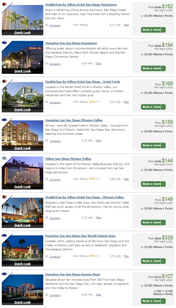 Bei Priceline komme ich irgendwie nicht auf ein richtig gutes Angebot (habe bei $70 Angebot aufgehoert zu bieten fuer alle Downtown Kategorien und Coronado fuer 2.5* und 7+).... also dachte ich mir ich versuche mal meine Hilton Punkte zu investieren.