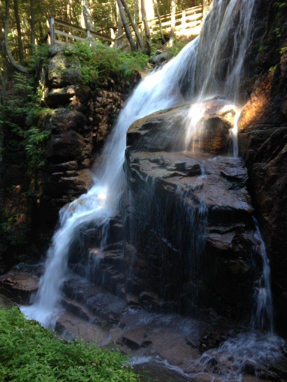 • Tag 7 – Teil 2 Den Kancamagus Highway sind wir somit von North Woodstock Richtung Conway gefahren. Die drei bekanntesten Overlooks sind Hancock, Pemigewasset und Sugar Hill – im Sommer auch schön, aber natürlich nicht so beeindruckend wie während der Foliage. Die Parking Lots waren entsprechend gross , aber bei uns leer. Danach haben wir bei den Sabbaday Falls gehalten, ein kurzer Spaziergang/Trail führt zu diesen vom Parkplatz. Da er sehr kurz , aber schön ist, sollte man ihn immer mitnehmen - auch wenn man nicht gut zu Fuß ist. Im Pool am Ende der kleinen Falls ist Baden zwar verboten aber der Pool war so einladend, dass man schon in Versuchung gerät – bei uns war auch eine Gruppe Jugendlicher gerade drin. Wir sind dann kurz die Falls hoch auf dem Weg und oberhalb der Falls konnten die Kinder sehr gut im Bach herumspazieren und diesen erkunden.