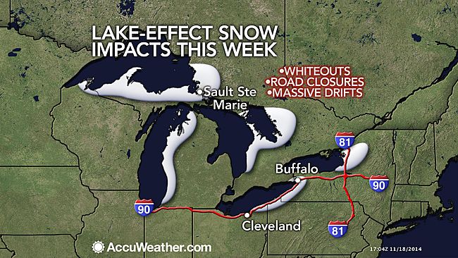 Die Luft kommt wohl meistens von Westen, wird ueber den (noch) "warmen" Great Lakes aufgeheizt und mit Feuchtigkeit gesaettigt. Oestlich von den Seen wird sie wieder von den (schon) sau kalten Landmassen abgekuehlt was dann automatisch zu einer Uebersaettigung und damit zu heftigen Niederschlaegen (Schnee in diesem Fall) fuehrt. Gluecklicherweise ist Oakland County recht weit vom Lake Michigan weg und der Lake Huron hat bei normaler Windrichtung keinen Effekt auf uns. :thumbup: