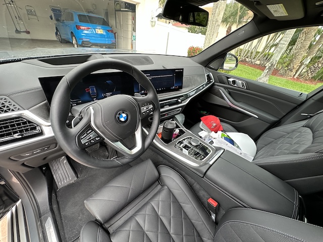 Zustand: wie neu. 3898 Meilen. Allen Furz und Feuerstein an Ausstattung - allerdings vieles nichtbenutzbar, weil (obwohl ich selber jahrelang BMW gefahren bin) es fast unmöglich ist, die Menüstruktur innerhalb eines Urlaubs zu erlernen, wenn man noch was anderes machen will ausser Auto lernen. Sirius war frei, Sitzklima funktionierte und mit einigem hin und her konnte ich auch alle Türen keyless öffnen und nicht nur die Fahrertür... Wireless CarPlay, also Navi nicht getestet.