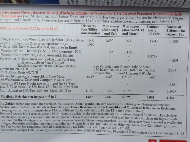 Seit meinen letzten Studitagen bin ich ein 0-Statistiker, vorher wurde jeder Cent, ähm Pfennig notiert... damit isses vorbei, also wird nur noch grob zusammengerechnet... so ein 3 Wochentrip in den Südwesten kostet uns round about 4500 - 6500 Euronen, wobei das von zig Faktoren abhängig ist, zum Beispiel der Shoppinglaune...