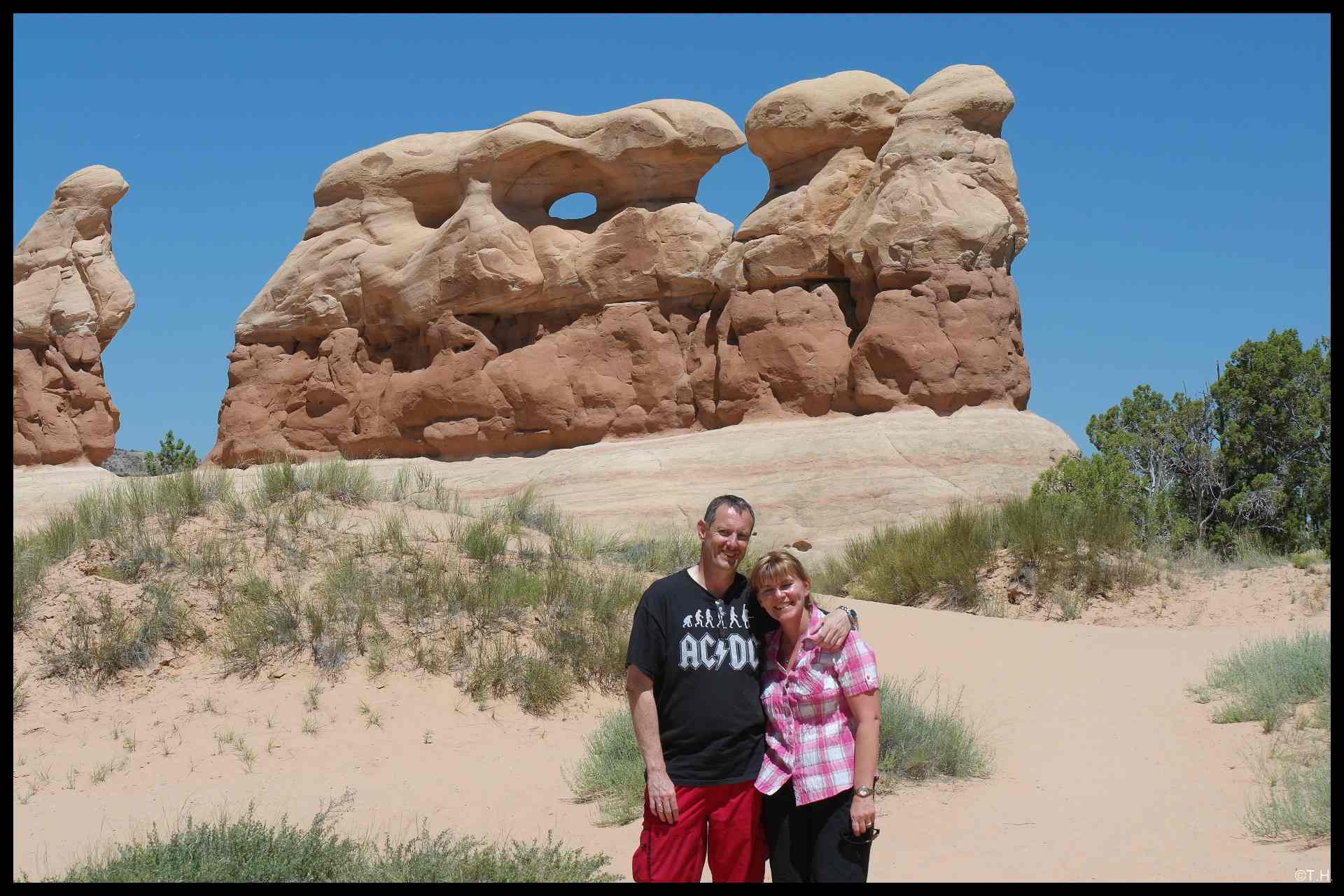 Auf dem Rückweg von der Wave begegnen wir einem deutschen Ehepaar, wir plaudern ein Weilchen - es war eine nette Pause. Solltet ihr euch hier wiederfinden, viele Grüße. Als wir am Auto ankommen, müssen wir uns erstmal runterkühlen. Weiter gehts zu den White Domes. Ursprünglich wollten wir noch den Trail laufen, dass klemmen wir uns aber für heute. Wie heisst es immer so schön, es muss auch noch was für das nächste Mal übrig bleiben.