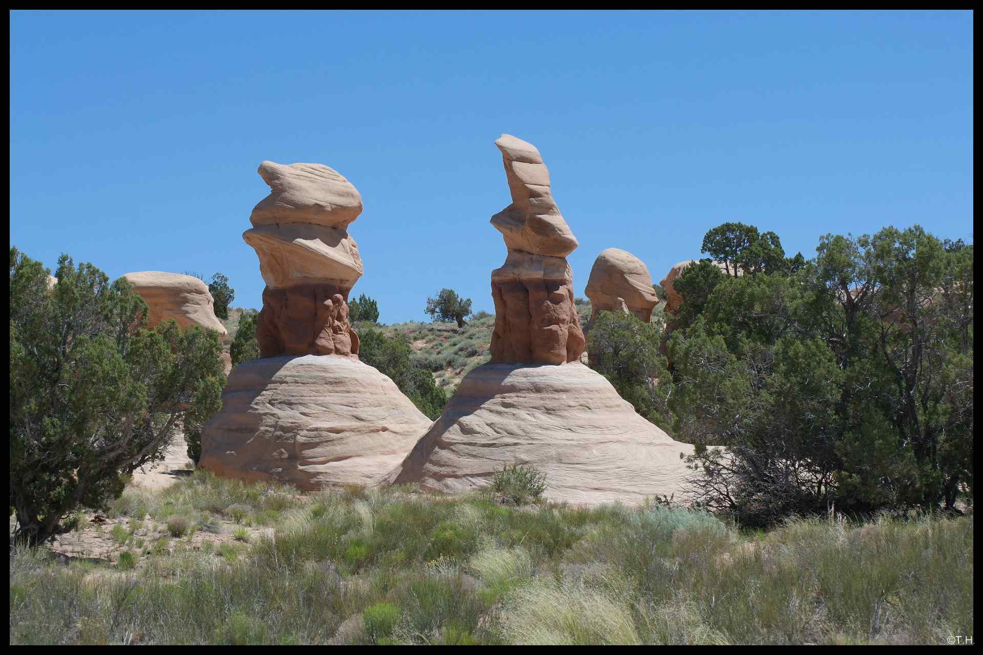 Auf dem Rückweg von der Wave begegnen wir einem deutschen Ehepaar, wir plaudern ein Weilchen - es war eine nette Pause. Solltet ihr euch hier wiederfinden, viele Grüße. Als wir am Auto ankommen, müssen wir uns erstmal runterkühlen. Weiter gehts zu den White Domes. Ursprünglich wollten wir noch den Trail laufen, dass klemmen wir uns aber für heute. Wie heisst es immer so schön, es muss auch noch was für das nächste Mal übrig bleiben.