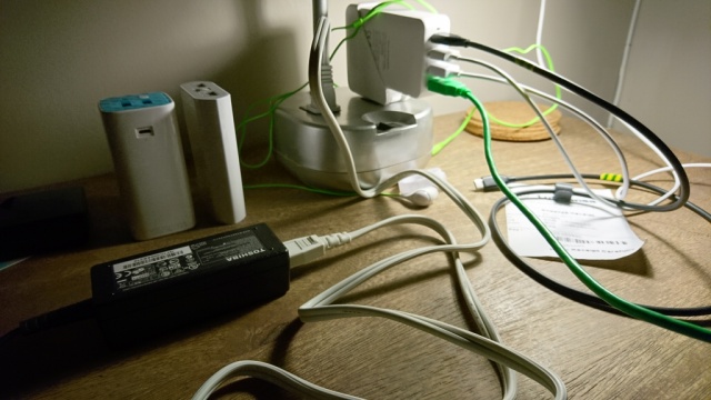 Das "silberne" wo die beiden Stecker drinstecken ist eine Tischlampe der Unterkunft, die zwei zusätzliche Steckdosen bereitstellt. Sehr praktisch, da erspare ich mir den Kabelsalat an der Wand...