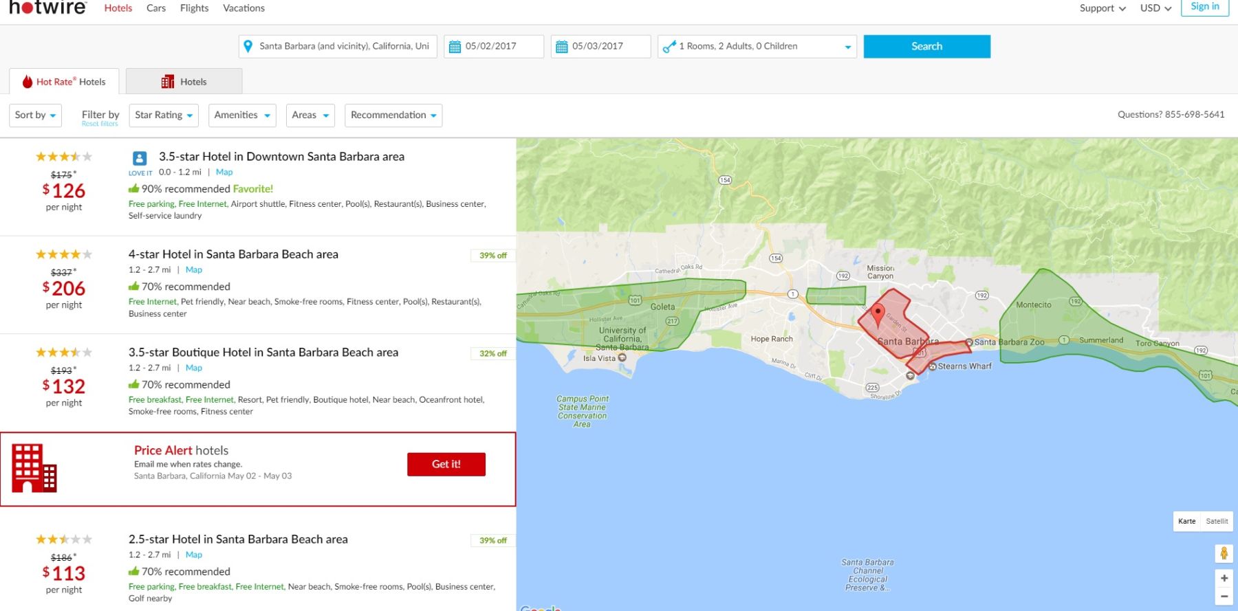 WIE findet man am besten ein adäquates Hotel in einer bestimmten Region? Ich schätze mal hinfahren und mal sehen, ist eine ganz schlechte Option (obwohl die in UK ziemlich gut funktioniert). Diverse Hotel-Find-Portale schmeissen mir zwar eine Menge Hotels in der Region Santa Barbara raus, aber ... ich bin von diesen Portalen nicht wirklich überzeugt (nicht einmal, wenn ich ein Hotel in Deutschland buche, da bin ich schon so oft auf die *** geflogen, weil es scheinbar nur teure Hotels gab, und vor Ort musste ich feststellen, dass es sehr viel günstigere Accomodations gegeben hätte).
