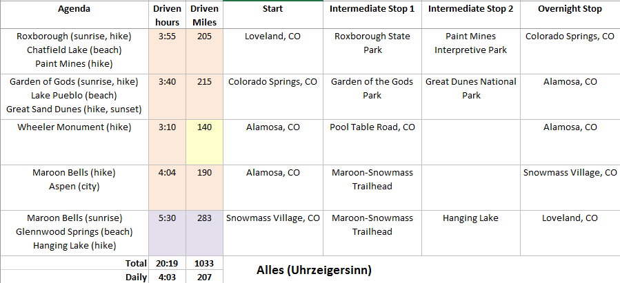 Da wir bei ihr wohnen, werden wir - so denke ich - vor allem Tagesausfluege in den RMNP machen und uns zu Tode wandern...