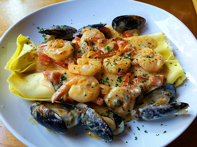 Also für mich wäre das Mahl eine Bestrafung - Muscheln und Krabben. Aber gut fotografiert.