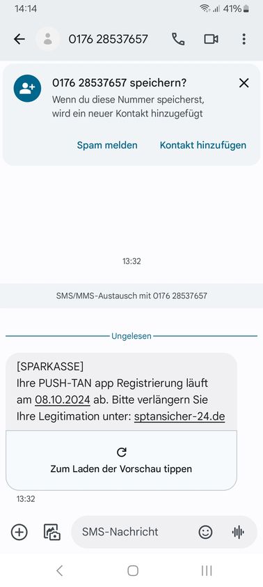 Sehr geehrter Kunde, ihre S-push-Tan Registrierung läuft am 7.11.24 ab. Jetzt erneuern: LINK :thumbdown: