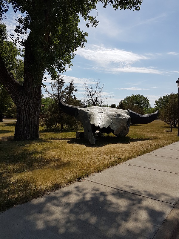 Die Hinweise deuten auf Medora hin. Dort findet man die neue Fotoattraktion: The Buffalo Headgenau so ist es