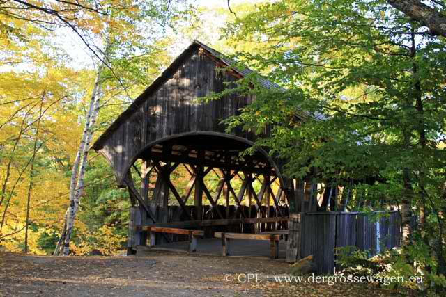 Die etwas ältere Sentinel Pine Covered Bridge im Flume Gorge in den White Mountains, NH.