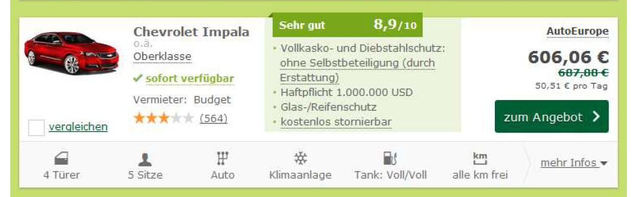 Ich hatte gestern schon auf der hier im Forum empfohlenen Seite von "billiger-mietwagen" gestöbert, da finde ich dann Angebote wie folgt: