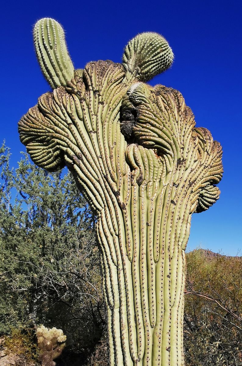 Auch haben wir entlang der Straße 2 der seltenen Crested Saguaros entdeckt.